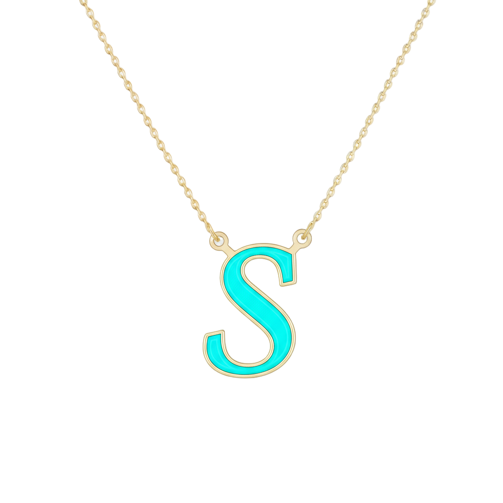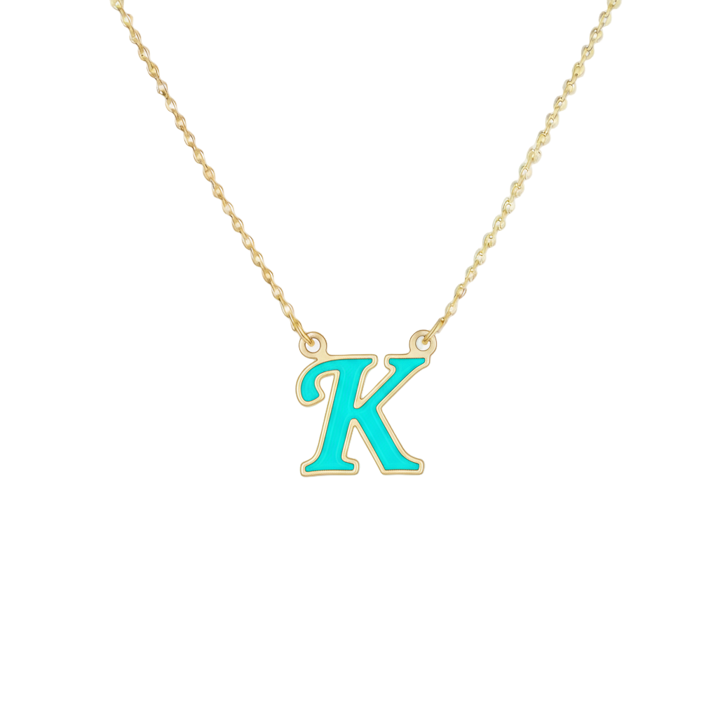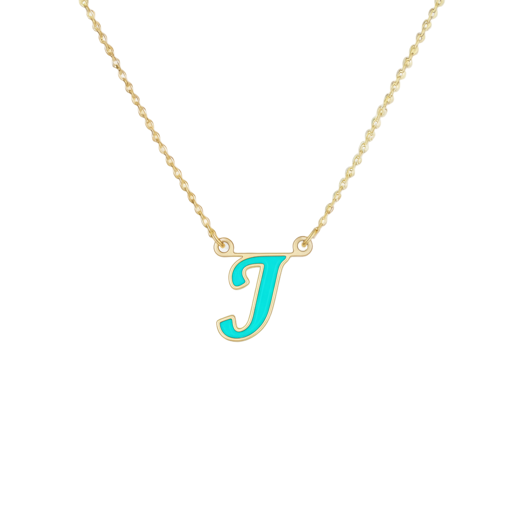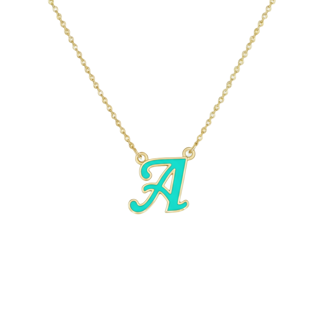 18K Gold Turquoise Enamel Initial Necklace – A to Z Letters