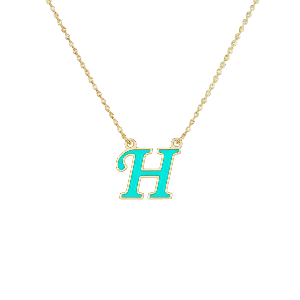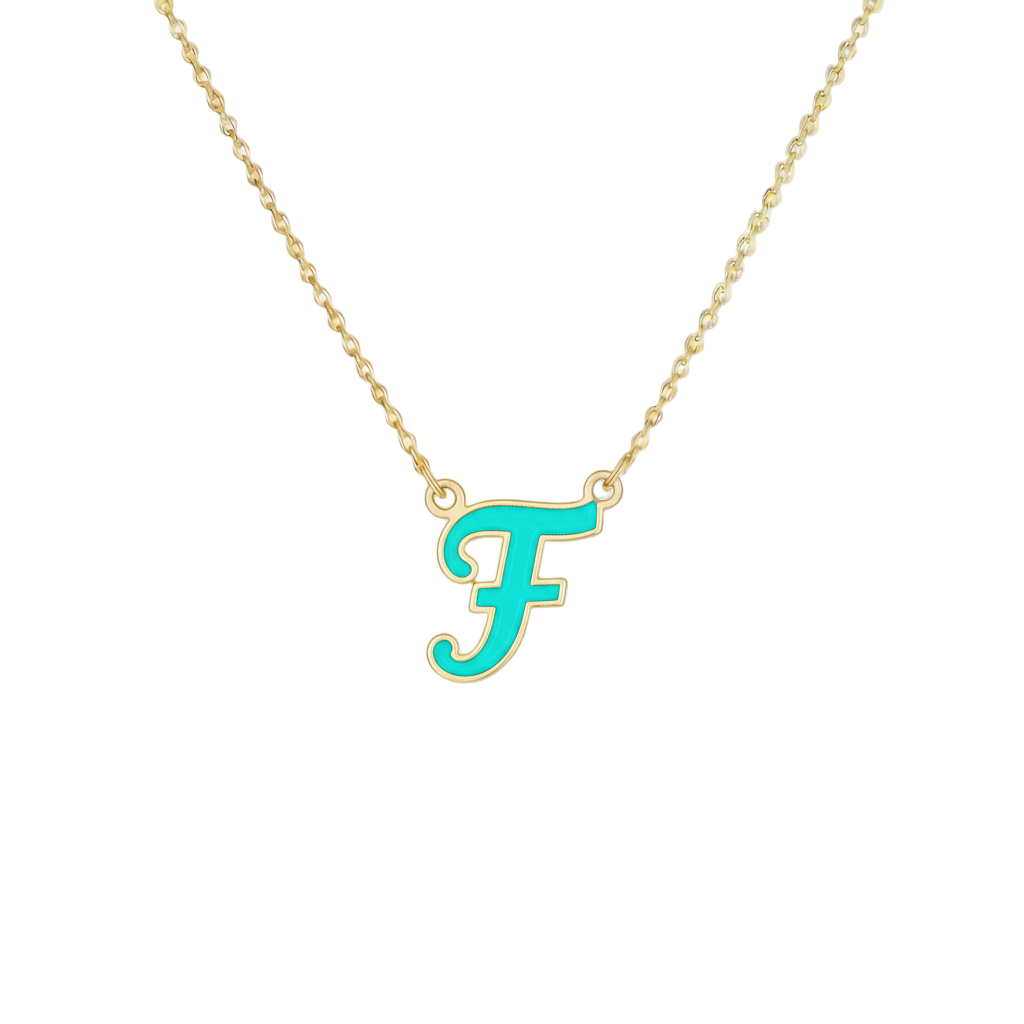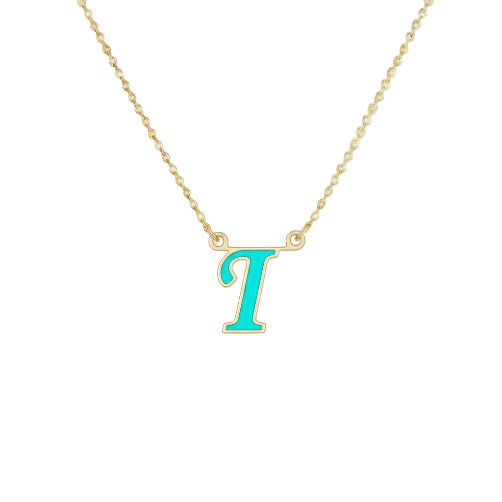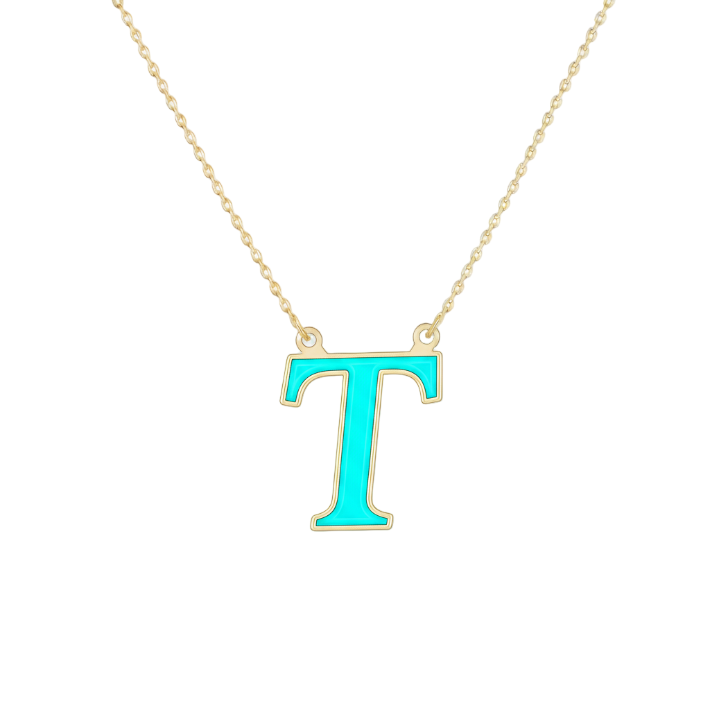 18K Gold Turquoise Enamel Initial Necklace – A to Z Letters